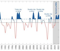 La Niña is an important cause of rainfall variability of Australia. A multi-year La Niña event can be particularly important for some climate risks. Some climate models are indicating that La Niña may continue for a third year through spring and summer 2022-23, increasing the chances of more rain and flooding. View briefing note